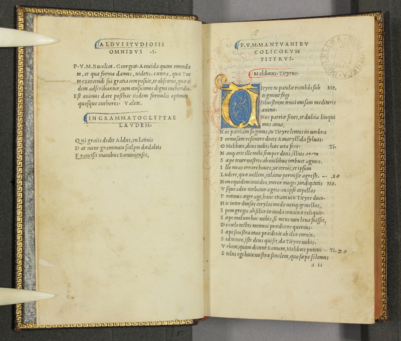 Aldine Virgil (Eclogues, 1501), a landmark Venetian edition introducing italic type and pocket-sized octavo books. These innovations supported wider reading among scholars and educated urbanites. The source page includes further curatorial commentary beyond syllabus scope. Source